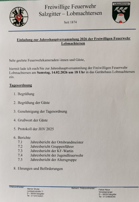 Freiwillige Feuerwehr Salzgitter                         Lobmachtersen             "31-41-1"